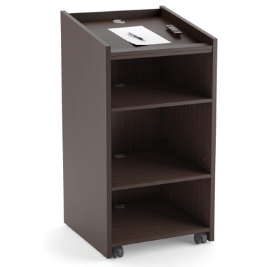 This mobile lectern is the perfect addition to any lecture space or any area where speeches or presentations are given. With an adjustable shelf and a top shelf that can be flat for a laptop or projector, or angled for convenient reading of papers, you will be able to present with total ease. Casters help keep this lectern mobile, for use in all kinds of spaces. Coming in 8 finishes, you will be able to find the perfect lectern to compliment your space.