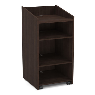 This mobile lectern is the perfect addition to any lecture space or any area where speeches or presentations are given. With an adjustable shelf and a top shelf that can be flat for a laptop or projector, or angled for convenient reading of papers, you will be able to present with total ease. Casters help keep this lectern mobile, for use in all kinds of spaces. Coming in 8 finishes, you will be able to find the perfect lectern to compliment your space.