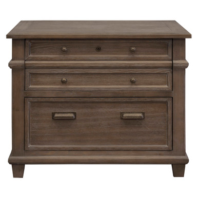 This two drawer lateral file, equipped with one locking legal/letter file drawer and one legal/letter file drawer, is the perfect addition to your office space. Coming in a weathered dove gray finish, with mottled hardware, this lateral file is elegant. Create a unique environment by adding this lateral file from the Monroe Collection.