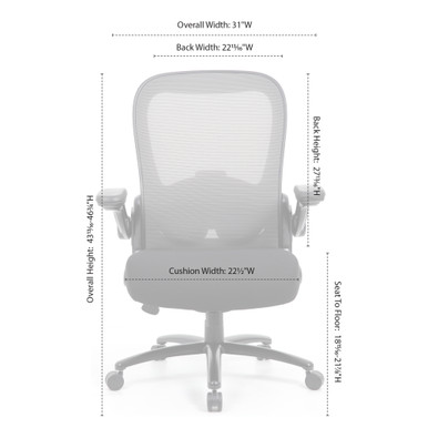 Ryde Big & Tall by OfficeSource features a heavy duty mesh back task chair that will ensure a comfortable sitting experience for a broad range of body types. With a 400 pound weight capacity, this big and tall task chair features a seat that is upholstered in black fabric and features high density foam and spring pack construction for added comfort. The gray accented mesh back allows the cushion to breath, minimizes moisture build up, and offers an adjustable lumbar feature. Enjoy additional features like height adjustable flip arms, a pneumatic gas lift seat height adjustment, a heavy duty spring tilt mechanism, and tilt tension control. This big and tall high back mesh task chair is perfect for any office, conference room, or study.