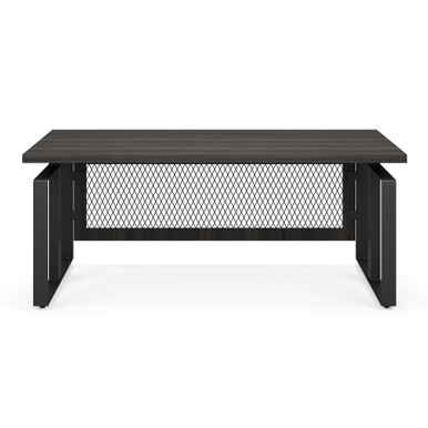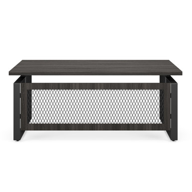 An elegant, modern desk, the OfficeSource Palisades Collection Industrial Height Adjustable Desk delivers a pure surface without the extra weight of cabinets or drawers. Leave your options open with this sleek and contemporary desk. Designed with a Gauntlet Gray, smoky color arrangement and strong rectangular angles and an industrially accented modesty panel, this adjustable height desk molds to fit your needs.
